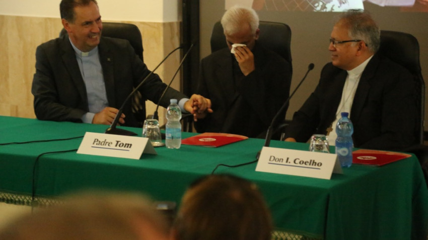 A rendfőnökségen az indiai szalézi szerzetest üdvözölte Ángel Fernández Artime rendfőnök és az egyetemes tanács több tagja, számos világi hívő, rendtársai; Rénat Szandhu asszony, India olaszországi nagykövete pedig virágcsokrot adott át Tom atyának tisztelete jeléül. A sajtótájékoztatót a rendfőnök köszöntőszavai után Moreno Filipetto vezette, a tolmács szerepét pedig Ivo Coelho, a szalézi rend formációs felelőse látta el.