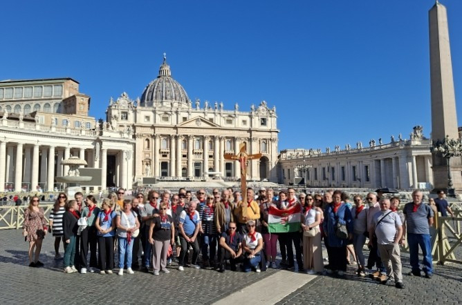 A szerdai napon a csoport ismét a Szent Péter téren gyűlt össze, hogy részt vegyen a pápai általános audiencián. A hívők ezúttal is testközelből láthatták a Szentatyát, aki az audiencia előtt körbejárta a teret. Az audiencia végén pápai áldásban részesültek. Délután a Santa Maria Maggiore-bazilika következett, ahol újabb szent kapun léphettek át, és imádkozhattak a Salus Populi Romani ikon előtt – ez az a Mária-kép, amelyhez Ferenc pápa is gyakran járt imádkozni apostoli útjai előtt és után. Megható pillanat volt megemlékezni arról, hogy pontosan két évvel korábban, 2023. szeptember 30-án kreálta Ferenc pápa bíborossá Prevost püspököt, akit ma már pápaként tisztelünk.