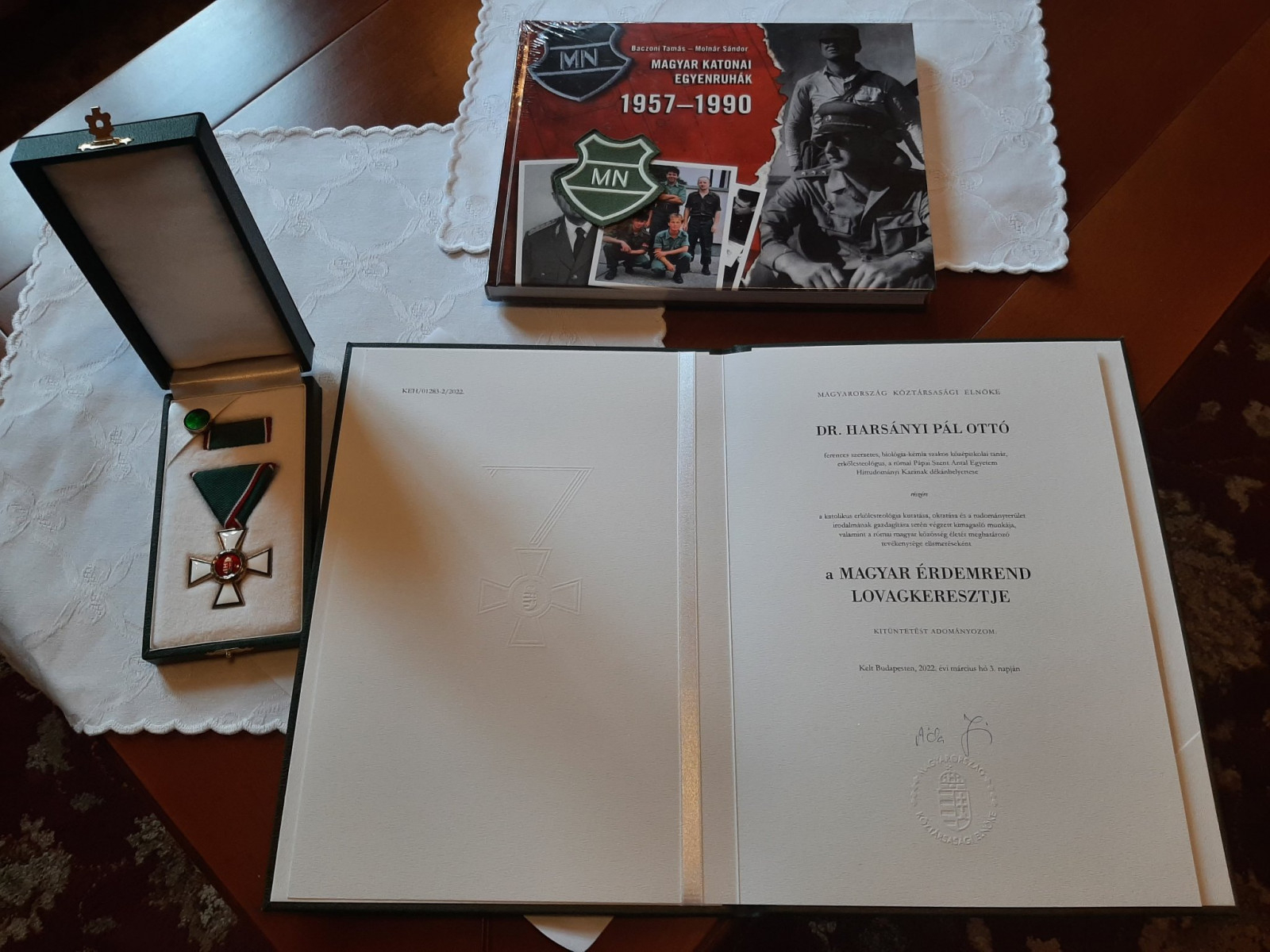 Habsburg-Lotharingiai Eduárd szentszéki magyar nagykövet a római magyar kolónia tagjai jelenlétében nyújtotta át a magas rangú kitüntetést Ottó atyának. Az érdemrend diplomáján ezt olvasható: „Magyarország Köztársasági Elnöke Dr. Harsányi Ottó Pál ferences szerzetes, biológia–kémia szakos középiskolai tanár, erkölcsteológus, a római Pápai Szent Antal Egyetem Hittudományi Karának dékánhelyettese részére a katolikus erkölcsteológia kutatása, oktatása és a tudományterület irodalmának gazdagítása terén végzett kimagasló munkája, valamint a római magyar közösség életét meghatározó tevékenysége elismeréseként a Magyar Érdemrend Lovagkeresztje kitüntetést adományozom. Kelt Budapesten, 2022. évi március hó 3. napján, Áder János köztársasági elnök”.