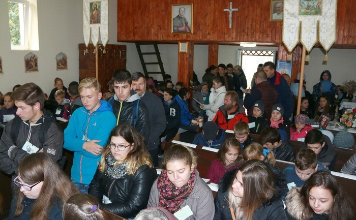 A fiatalok a csoportbeszélgetések után délben már a kicsikkel együtt imádkozták az Úrangyalát, ezt követően pedig különböző szórakoztató foglalkozásokon vehettek részt a nagybányai Somaschi Alapítvány önkénteseivel.