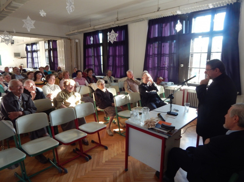 Rónaszéki Gábor a Szemek tükréből tekint rád az Isten című, vele készült beszélgetőkönyv témái köré csoportosította előadását. Számos hangulatos, mulattató, vagy éppen megindító, érzelmeket felkavaró anekdotán keresztül juttatta el hallgatóságához az évtizedek lelkipásztori munkája során érlelődött gondolatait.