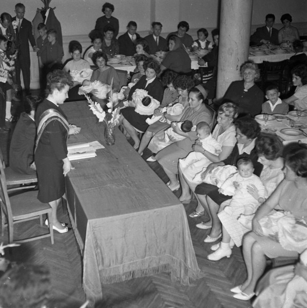 A siker azonban nem volt átütő. Ahogy a Magyar Szocialista Munkáspárt agitációért felelős munkatársai fogalmaztak: „el kell jutnunk ahhoz a következtetéshez, hogy főként a születés és a halál »misztikuma« az a pont, amely megfontolásra készteti az embereket, ahol megtorpannak – és ahol a számukra megmagyarázhatatlan, a kiszámíthatatlan ismét visszaviheti őket a vallás útvesztőibe”. Hogy ez a megállapítás mennyire jogos, azt a korszak statisztikái is jól mutatják. A hetvenes évek elején az újszülöttek közel nyolcvan százalékát még – gyakran titokban – megkeresztelték, a temetések több mint kétharmadát pedig egyházi szertartás keretében tartották. Egyedül az esküvők valamivel több mint fele zajlott már „társadalmi szertartás” szerint. (https://fortepan.hu/hu/photos/?id=59867)