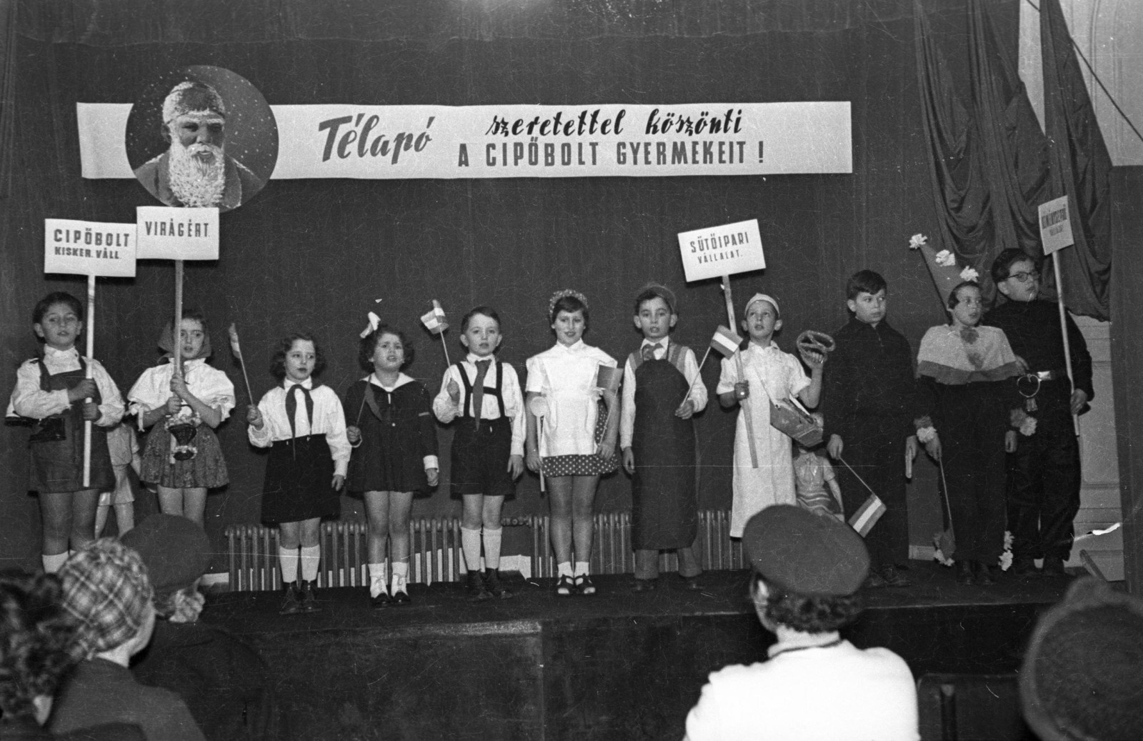 Munkaszüneti nap lett április 4., a „felszabadulás” kijelölt dátuma és november 7., „a nagy októberi szocialista forradalom” ünnepe. Kiemelt jelentőséget kapott május 1. és új tartalmat, megjelenési formákat augusztus 20. A Mikulás helyett a Télapó érkezett december 6-án, a karácsonyi ünnepség helyett pedig „fenyőünnepet” tartottak az iskolákban, az óvodákban és a munkahelyeken. (https://fortepan.hu/hu/photos/?id=123474)