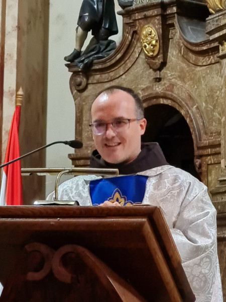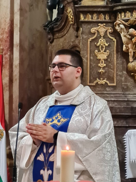 Az ünnepi szentmisét szombat este Juhos Benjamin OFM ferences atya mutatta be. A debreceni domonkos plébániáról származó újmisés ünnepi beszédében kiemelte, hogy Mária csendesen és alázatosan akar jelen lenni életünkben, úgy, mint ahogyan Jézus mellett élt. Ezt fejezi ki a rózsafüzér is: Mária által Jézushoz jutni. Szent Ferencre hivatkozva hangsúlyozta, hogy minden keresztény hivatása az, hogy „máriás” legyen, vagyis hogy befogadja szívébe Jézus szavait. Végül kiemelte, hogy először