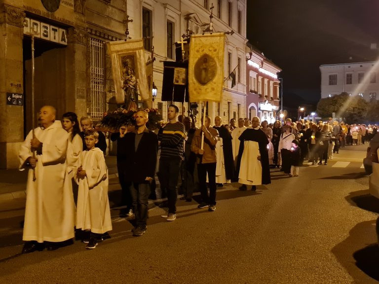 A szentmisét ünnepi gyertyás körmenet követte a templomi előtti Széchenyi téren, így is tanúságot téve Krisztusról és a Szűz Mária iránti szeretetről, kérve anyai oltalmát.