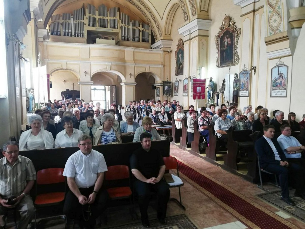 Az előadás után a résztvevők átvonultak a templomba, ahol elimádkozták a rózsafüzért. A tizedek között elmélkedéseket olvastak fel a különböző településekről érkezett társulati tagok. A rózsafüzért szentmise követte, amelyen a homíliát Tímár Asztrik ferences mondta.