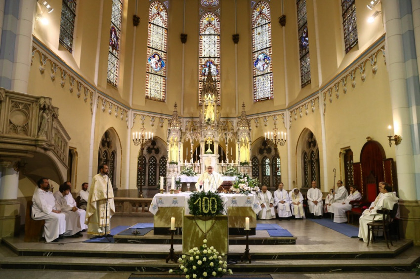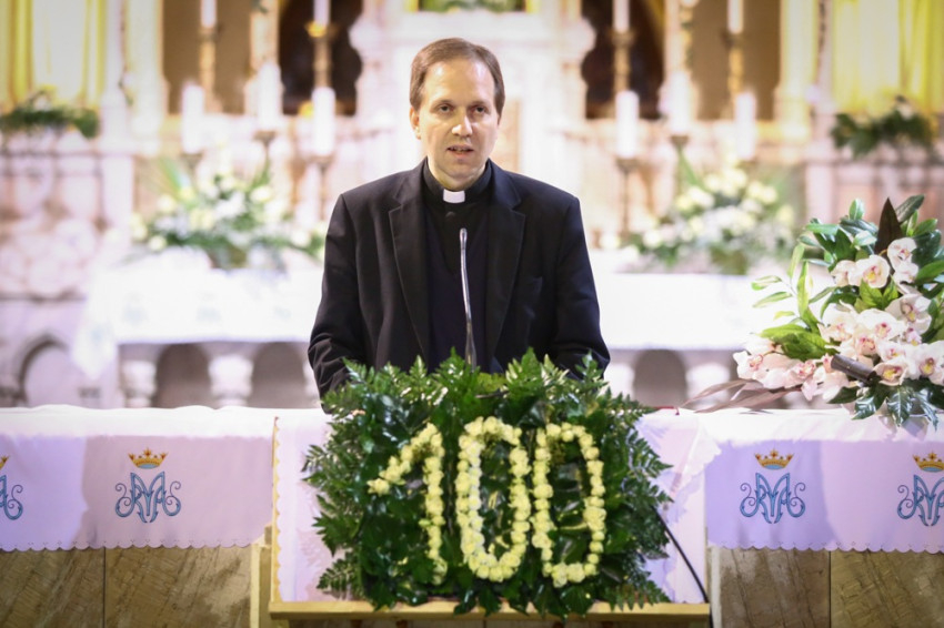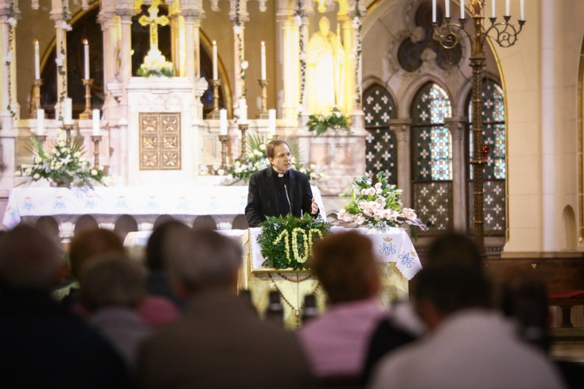A püspöki konferencia titkára kiemelte: a templom védőszentje Szűz Mária, és a centenáriumi évforduló különösen alkalmas arra, hogy hálát adjunk Istennek. Emlékeztetett rá: Rózsafüzér Királynője ünnepének bevezetése a lepantói tengeri csatához kötődik: 1571. október 7-én, II. Szelim török szultán idején a Szent Liga hajóhada győzelmet aratott a Müezzinzade Ali pasa vezette török flotta fölött. Mivel az ütközet előtt rengetegen imádkozták a rózsafüzért, V. Pius pápa (1566–1572) Szűz Máriának tulajdonította a győzelmet, és annak napjára rendelte el Mária e jeles ünnepét, először Győzelmes Boldogasszony tiszteletére.