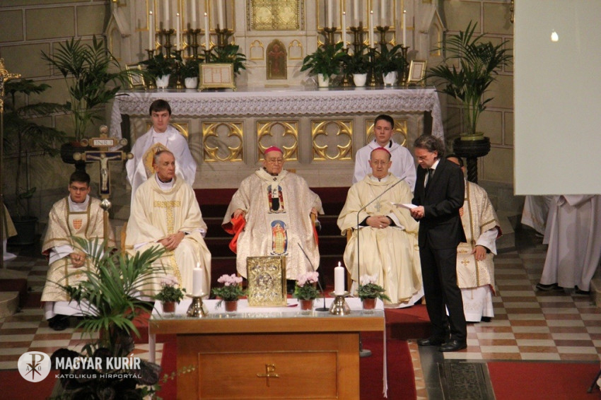 A szentmise végén Nagy Károly, a veszprémi Szent Mihály-bazilika plébánosa a pap testvérek nevében köszöntötte Szendi József nyugalmazott érseket.