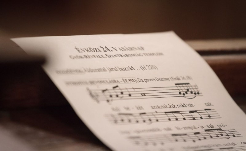Az orgonaművész elmondta, a korál szövege Luther Márton műve, a Veni Sancte Spiritus kezdetű latin himnusz német nyelvű, strófákba szedett átirata.