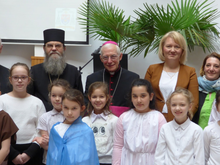 Az edelényi iskola énekkara és a rakacaszendi tagiskola tanulói műsorral köszöntötték a nunciust.