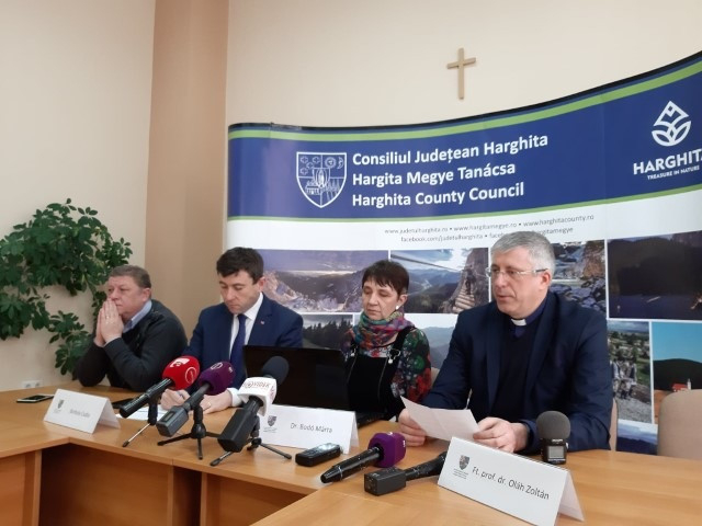 Tolmácsoljuk a Katolikus Egyház köszönetét a helyi önkormányzatok vezetőinek, Borboly Csaba Hargita megyei, Tamás Sándor Kovászna megyei és Péter Ferenc Maros megyei tanácselnöknek, Ráduly Róbert polgármesternek, akik őszinte hozzáállásukról biztosítottak, és minden követ megmozgatnak a történelmi pápalátogatás jó előkészítésének érdekében.