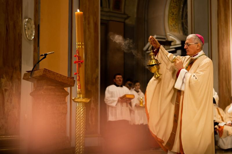 „Ezen az éjszakán, amikor hazatérünk, ha szükség mutatkozik rá, erősítsük meg a tudatot, hogy nem valami vak sors, sem a természeti elemek fejlődésének gyümölcsei vagyunk, hanem az Istentől vagyunk szeretve, akarva és teremtve, aki tőlünk soha nem tartotta vissza irgalmas kezét; az Atyától, aki akkor is szeretett minket, amikor hátat fordítva neki hűtlenné lettünk hozzá, és aki nem tagadott meg tőlünk semmit, mindvégig szeretett, egészen az emberi logika által elképzelhetetlenig” – mondta Santo Gangemi apostoli nuncius, a szabadkai székesegyházban megtartott húsvéti vigílián elhangzott szentbeszédében, április 8-án.
