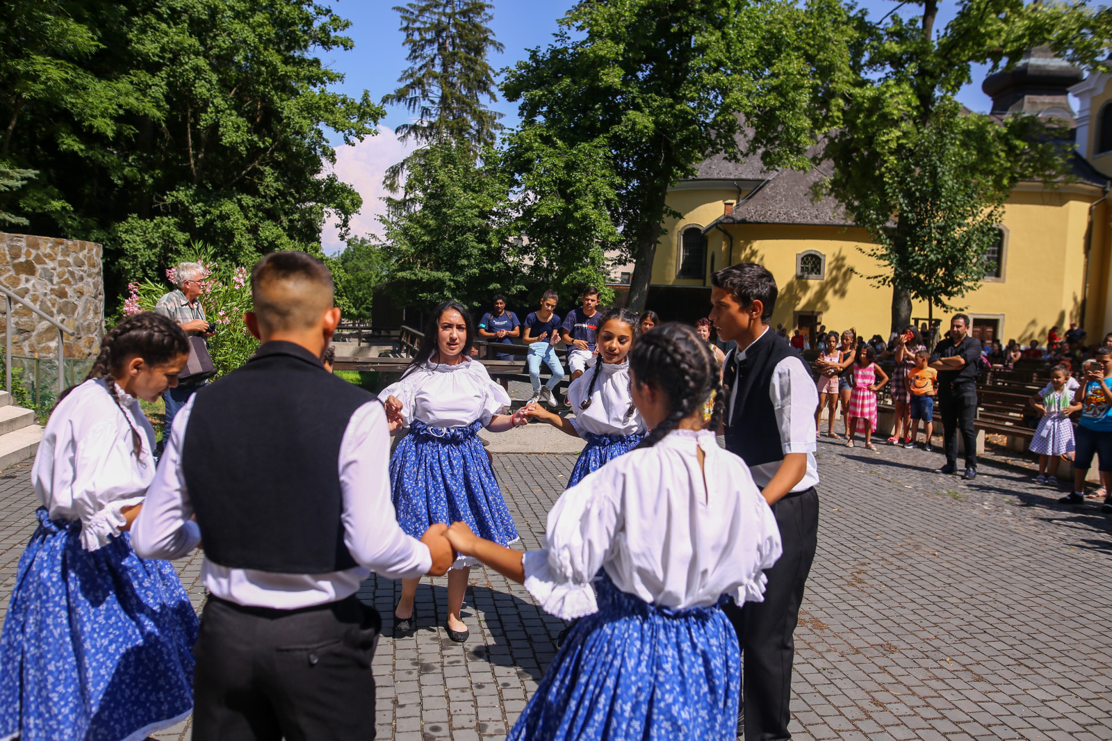 A cigány közösségek különböző műsorokkal készültek a zarándoklatra. Elsőként a nyírkátaiak adtak elő zenés-táncos darabot saját hangszerekkel, gitárokkal és cajonnal, majd a hernádvécsei gyerekek tánca következett. Körömről a cigány hagyományőrzők léptek fel, őket egy Brazíliából származó fiatal atya kísérte Szentkútra, majd az érdiek táncoltak. Vanyarcról, Dejtárról és Szátokról érkező gyermekcsoportok egy Szeretem keresztem című dramatizált játékot adtak elő az „Uram, neked adom szívem, kereszted legyőz engem” kezdetű ének meditatív ismétlődésére. Egy fiú hatalmas keresztet cipelt egyedül. A többiek gúnyolódtak rajta, majd segítettek neki annak cipelésében egészen addig, míg maguk is felmutatták és felvették saját, kisebb keresztjeiket. A hagyományőrző műsort a sajóhídvégiek fehér-kék ruhás körtánca zárta.