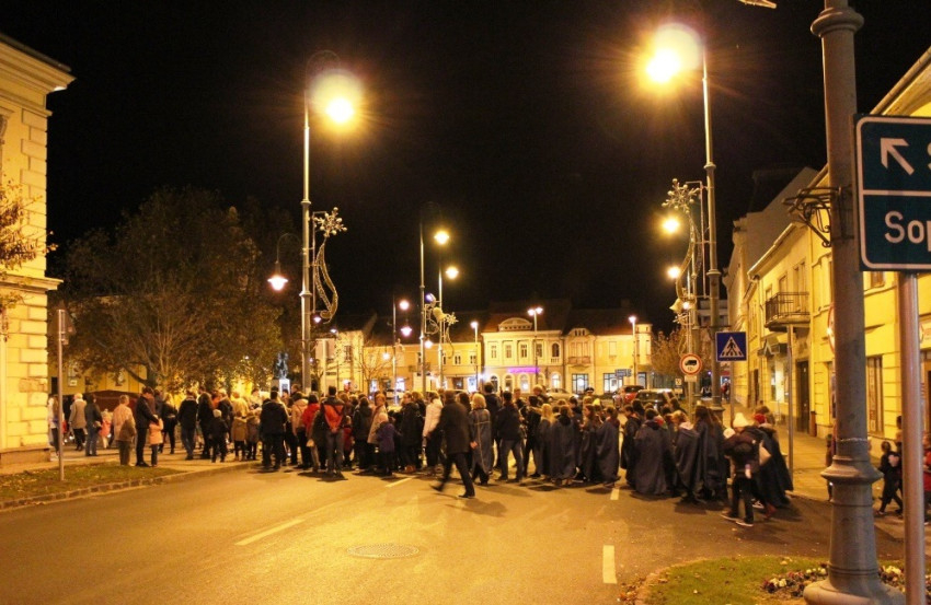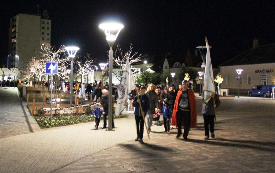 Idén új, hosszabb útvonalon haladt a menet, kihasználva Sárvár gyönyörű Posta terének fényeit. Közel félórás sétát tettek a belvárosban.
