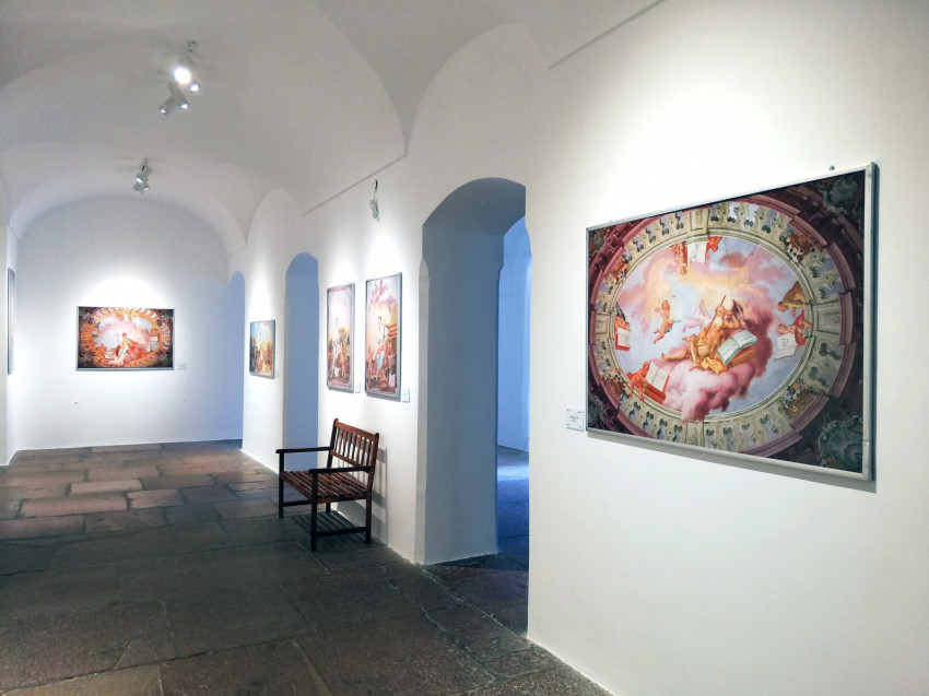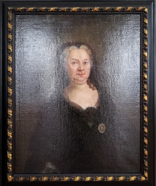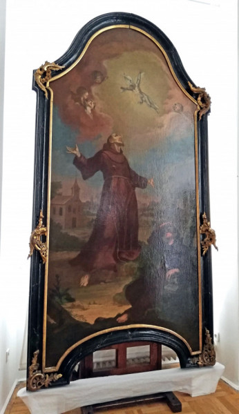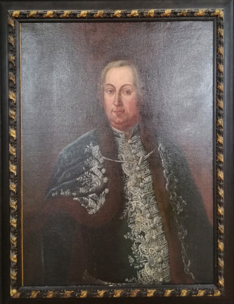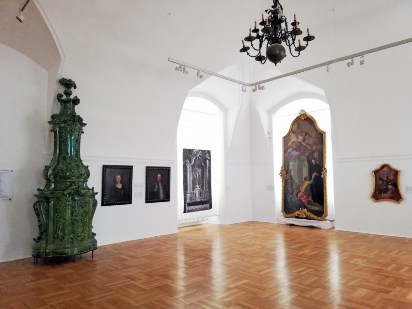 A belső teremben két hamisítatlan 18. századi portrét láthatunk, amelyek gróf Zichy Miklóst és a feleségét ábrázolják 1760 körül. Egy másik nagy méretű olajfestményen, amely egykor a kiscelli Szentháromság trinitárius templom mellékoltárképe volt, Szent Ivót láthatjuk. A festmény a jogtudományok doktorát, az ügyvédek, a bírák, a közjegyzők és a pereskedők védőszentjét ábrázolja, amint szegények és árvák veszik körül a nagy tömegben. Schervitz Mátyás az önarcképét is ráfestette a vászonra, a bal oldalon kitekint a nézőre, figyelmébe ajánlva magát.