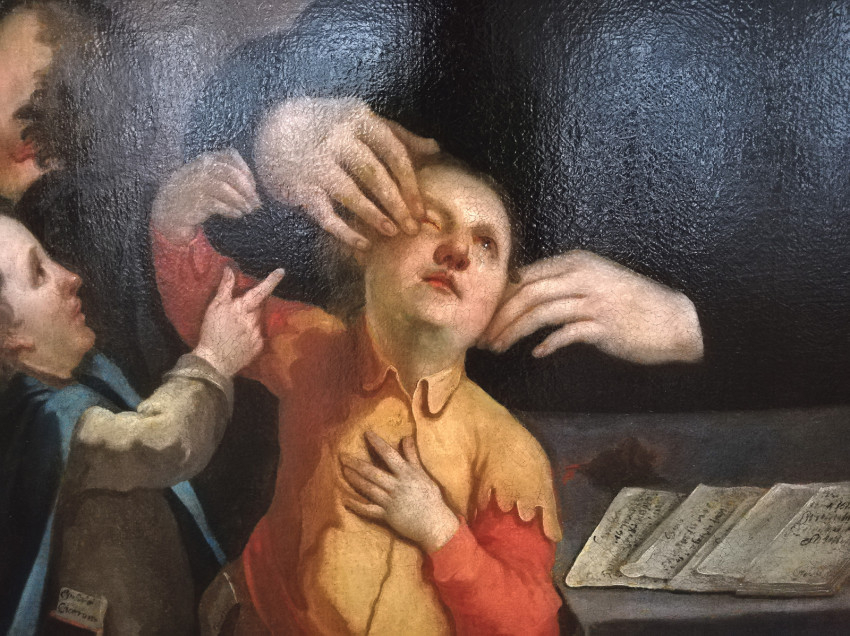 A teremben van még néhány figyelemre méltó festmény, ilyen például a Kalazanci Szent József csodás gyógyítása című. Ezen kissé koravénnek látszó gyerekek a csodatévő Szent Józsefet bámulják: éppen helyreteszi a szemgolyóját egy fiúnak, aki játék közben elvesztette azt. Erről olvashatunk egy 18. századi kiadványban, amely a piarista rend alapítóját népszerűsíti.