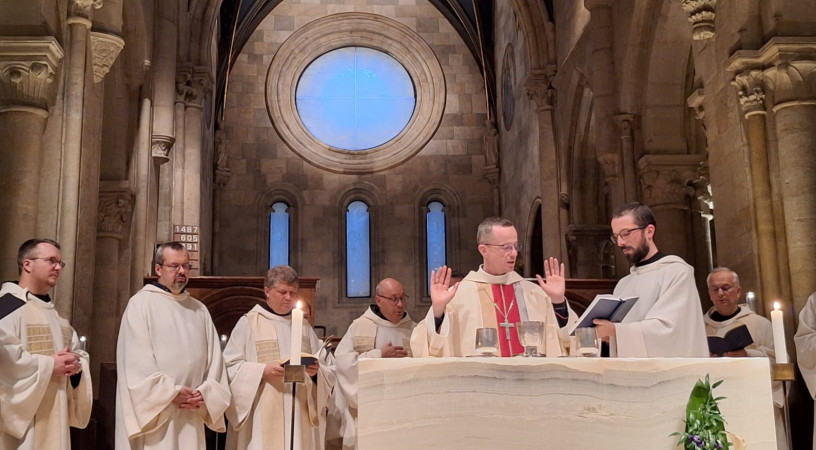 XI. Piusz pápai tiarájának aranymásolata díszíti