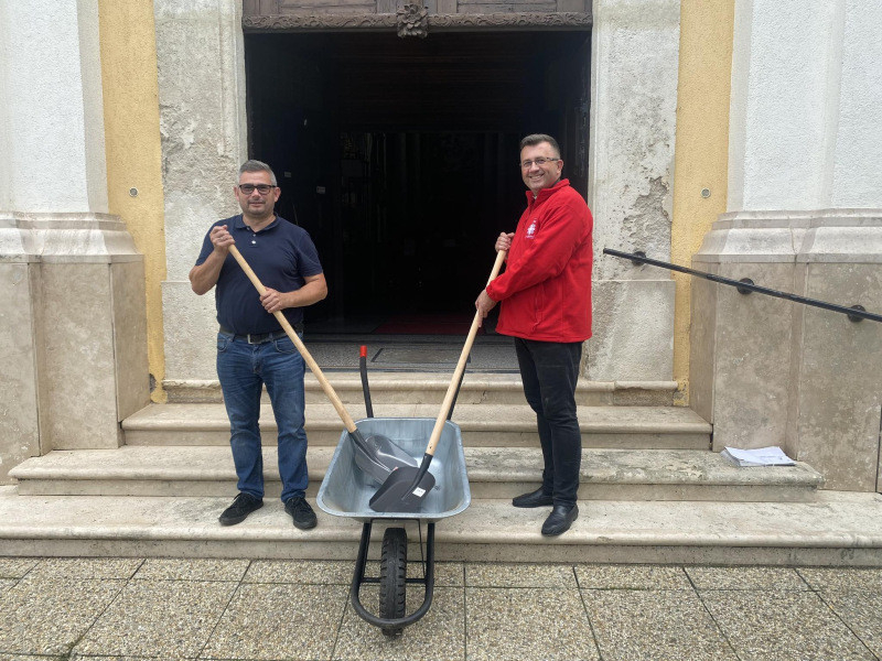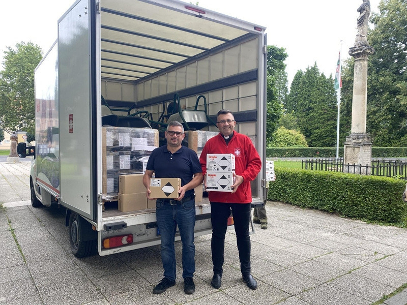 A tizenegy talicska, tizenkilenc lapát, nyolcvan raklap hipó, egyéb felületfertőtlenítők és kézfertőtlenítők átadása a szentgotthárdi Nagyboldogasszony-plébániatemplom előtt történt Bodorkós Imre plébános atya közvetítésével. A segélyszállítmányt Dejan Horvat atya, Markovci plébánosa juttatta el Koroška régióba, Prevalje településre.