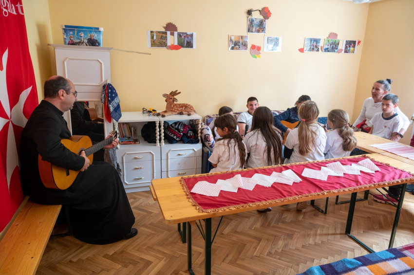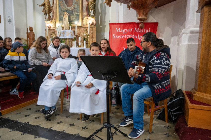A zajki gyerekek énekkel fogadták Székely Jánost és a vendégeket. A püspök maga is gitárt ragadott, és csatlakozott a vidám csapathoz.