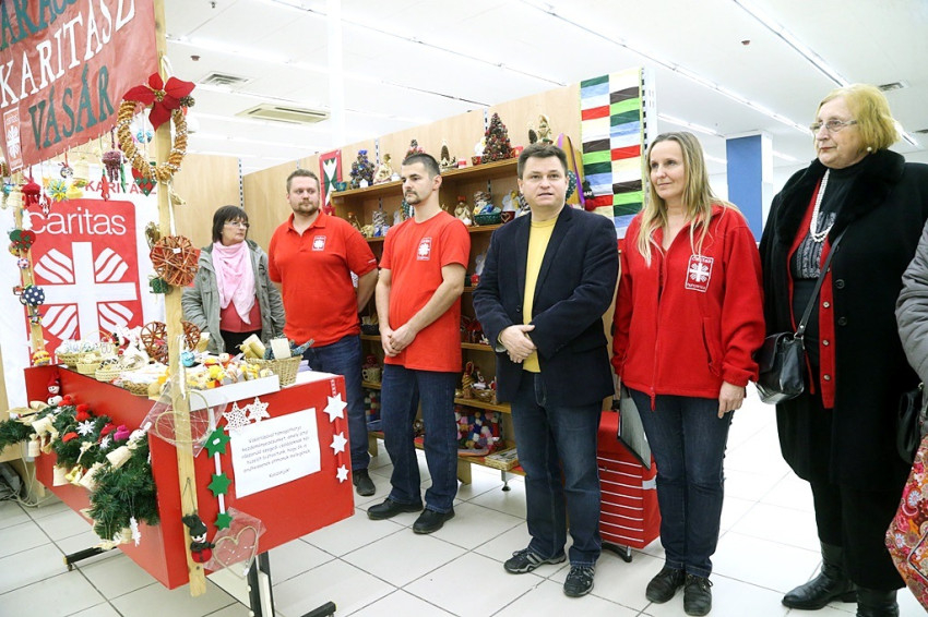 „Fenyődíszek, karkötők, adventi koszorúk és számos más kézműves termék megtalálható vásárunkon. A Szeged-Csanádi Egyházmegyei Karitász csoportjai, önkéntesei, az ÁGOTA Játszóházba járó gyermekek és családok, valamint a L. É. T. Egyesület és Önkéntes Mozgalom Kiss Sándorné által vezetett nyugdíjasklubjának kézműves alkotói csoportja készítettek apróságokat a vásárra. A bevétel egy része hajléktalan embertársainkhoz kerül: a »teajárat« kezdeményezés keretében meleg pokrócokat, ruhákat, élelmiszert viszünk a fedél nélkül élőknek. Emellett a tűzifaakcióhoz is szeretnénk hozzájárulni, melyen keresztül már hosszú évek óta sok száz családot segítünk és támogatunk” – mondta el Kothencz János, a Szeged-Csanádi Egyházmegyei Karitász igazgatója a jótékonysági vásár megnyitóján, december 12-én. A megnyitót a Szegedi Tudományegyetem Zeneművészeti Karának növendékei színesítették előadásukkal.