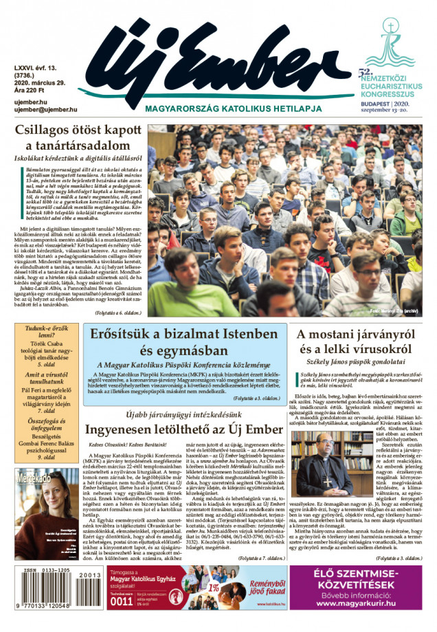 Bizony sokak munkahelye került átmenetileg veszélybe, vagy már meg is szűnt. Szolidaritás, segítség másoknak – e váratlan helyzetben pillanatok alatt új értelmet kapott. Ki hitte volna akár egy hónapja, hogy nem lesz víz a szenteltvíztartóban? Ki hitte volna, hogy vasárnap nem tudunk szentmisén részt venni egyetlen templomunkban sem? Megváltozott a világ, reagálni kell a változásokra. Ezt tettük, amikor ingyenesen elérhetővé tettük múlt héten az Adoremus liturgikus kiadványt, az Új Ember katolikus hetilapot és annak Mértékadó mellékletét. Pedig ebből volt bevételünk, szó szerint ebből élünk. Ebből lehetett fizetni a nyomdát, de ebből kaptak bért a munkatársak is.