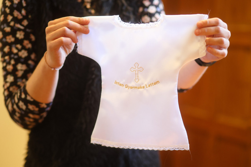 „Van egy kis lavórunk, amit arra szoktunk használni, hogy az előírásoknak megfelelően egy teljes napig áztassuk benne a korporálét és a kehelykendőt. Csak utána lehet csak kimosni. Az áztatóvizet nem a csatornába öntjük, hanem a virágokra” – fűzi hozzá Adrienn. A korporálét megfelően kell vasalni is, hogyha ráhullana az Euchrisztia egy morzsája, az gondosan védve benne maradjon. Zsolt meg is mutatja, hogyan, és közben elmagyarázza, hogy mi a szerepe a többi kendőnek.