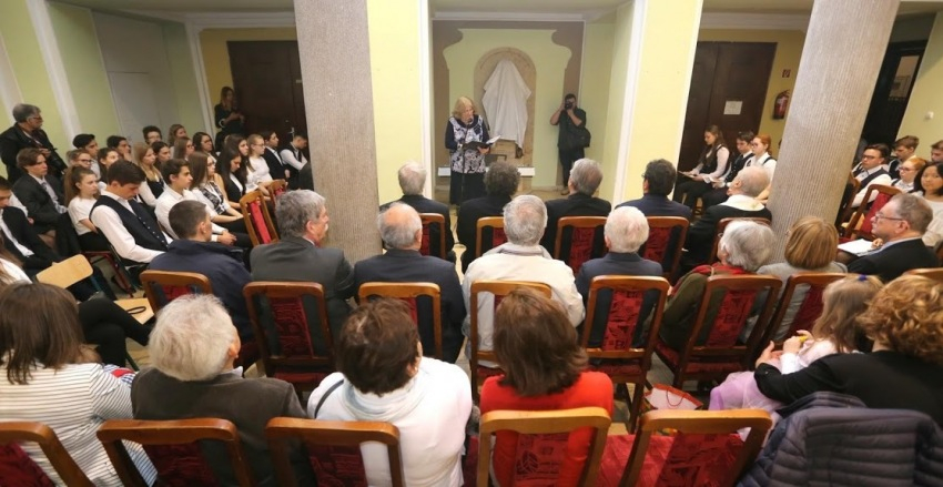 A diákok fuvola-, cselló- és zongorajátékkal, népdalokat énekelve, verseket szavalva működtek közre az ünnepségen, melynek zárásaként a budavári alpolgármester koszorút helyezett el az új szobor előtt.