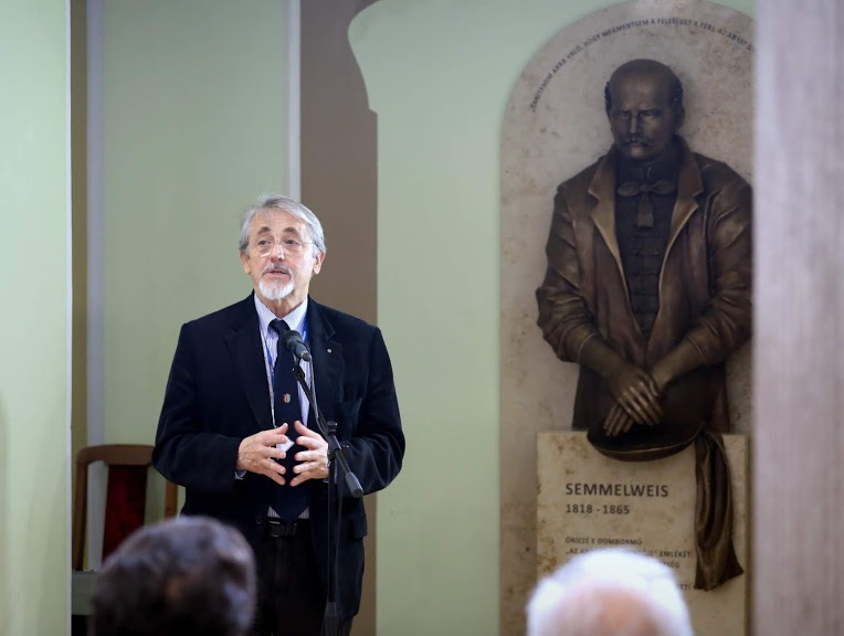 Érzékletesen, a diákok számára is érthetően ismertette a rektor a nagy felfedezést, hogy hogyan okozhatnak nagyobb bajt a kórházban dolgozó orvosok amiatt, hogy folyamatosan érintkeznek elhunyt betegekkel. Bemutatta Semmelweis szüntelen törekvését, amivel megpróbálta elfogadtatni a korabeli orvostársadalommal felismerését, s rávenni az orvosokat a klórmeszes kézmosásra, aminek köszönhetően számottevően csökkent az anyák halálozási aránya.