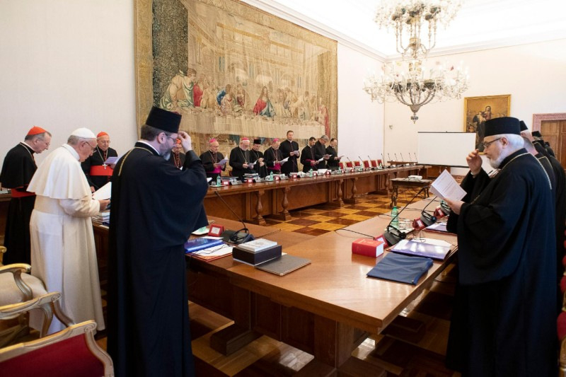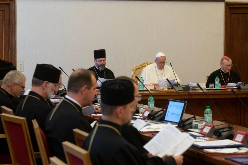 Munkatársaival együtt Ferenc pápa nagyra értékelte az ukrán görögkatolikus egyház történetét; lelki, liturgikus, teológiai és kánoni hagyományát; hűségét Péter utódához, amit a mártírok vére erősít és pecsétel meg – olvasható a találkozóról tájékoztató szentszéki sajtóközleményben.