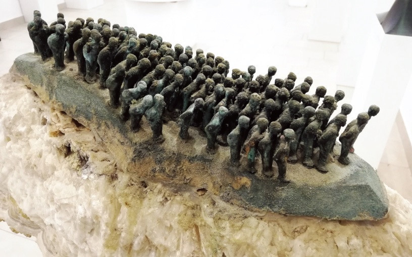 Lugossy Mária Klónok II. című, 2003-ban készült alkotásán arctalan emberek egy csoportja talán egy megfeneklett, fölfordult csónakon várja a tenger lecsendesedését. Alattuk a kristályosra fagyott zátony. Láthatóan él bennük a remény, hogy valaki rájuk talál, és kimenti őket szorult helyzetükből. A mű akár a bibliai vízözön metaforája is lehetne. A bronz és a természetes, megmunkálatlan kő tökéletes harmóniában van egymással. A szobrász nem csak távolságtartó nézője az eseményeknek, hanem együttérez a szenvedőkkel, a számára ismeretlen, magukra maradt emberekkel.