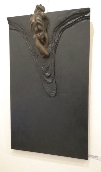 Mint Lugossy Mária legtöbb művének, ennek is egyszerű a címe: Plasztika (2006). A falra akasztható bronzlapon egy meztelen férfi korpusza bontakozik ki, amint éppen elragadja a mélység. Művéről szóljon most inkább maga az alkotó: „Az emberrel együtt a szenvedés vált valósággá, és a cselekvés a passzív létezés helyett. Már nem sodródik, úszik a nagy árral, hanem ő formálja a dolgokat olyanná, amilyenek. A létezés értelme maga a küzdelem. Valami merőben új születik az elmúlás pillanatában, mozdul a szenvedés éjszakája, egy ereje teljében lévő férfitest bontakozik ki belőle, hátrahanyatló fejjel, nekifeszülő mellkassal. Most hal meg, de nem letaglózva, hanem önmaga csúcsán, cselekvő halállal; nem akar meghalni, de vállalja a halált. Olyan, mint a tölgy, amikor a gyökerébe vág a fejsze, de nem törik ketté, zuhantában is adni tudja önmaga teljességét. Visszahanyatlik az anyagba, amelyből vétetett, ugyanakkor kiszabadul belőle, szellemivé magasztosul.” Lugossy többször is földolgozta ezt a témát, láthatóan erősen foglalkoztatták létezésünk alapkérdései.