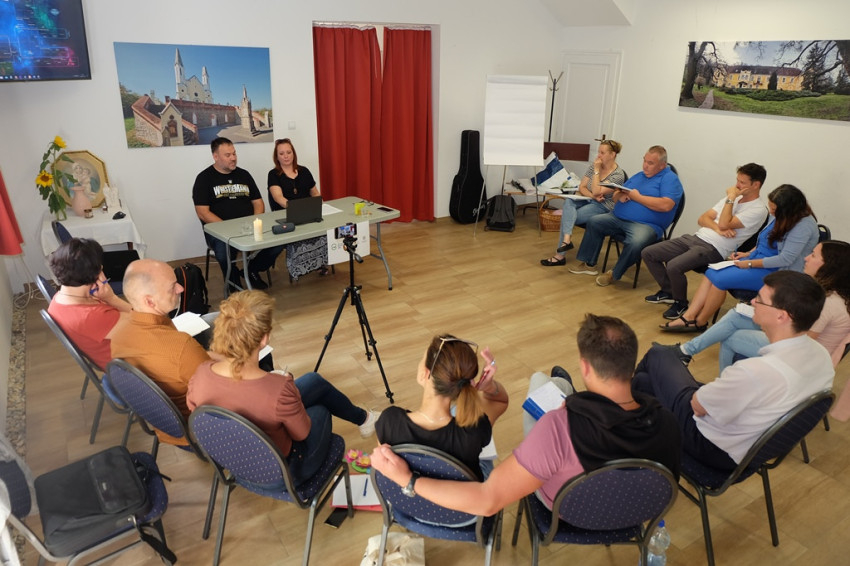 A kétéves képzést lezáró augusztusi hétnek fokozott izgatottsággal vágtunk neki. A tavalyi képzés a házaspárok épülésére szolgált, idén már a tanítványból apostollá válás útját jártuk. Nekünk kellett a szívtémáinkat formába önteni és először 5 perces kiselőadásokat készíteni, melyekből a nyári táborra 45 perces előadásokkal kellett előrukkolnunk. Emiatt volt fokozott izgatottság, de ahogy az előadásainkat átadtuk, leereszthettünk és az izgalom helyét átvette az öröm és kacagás.