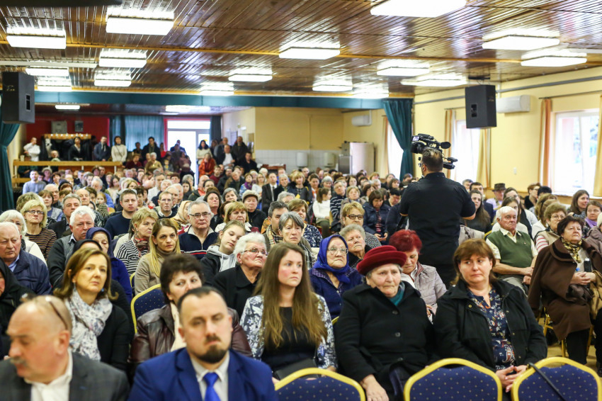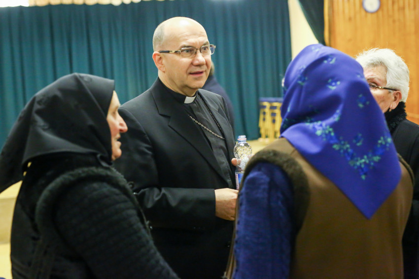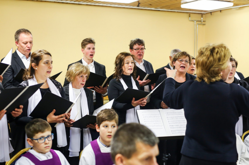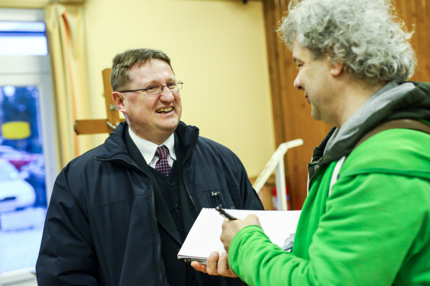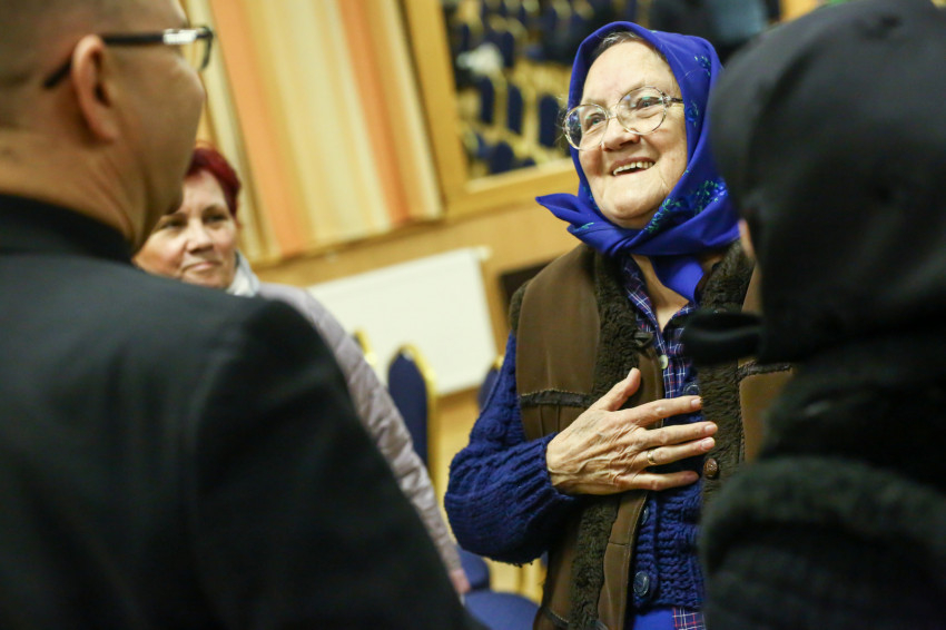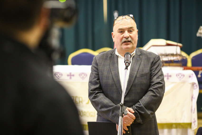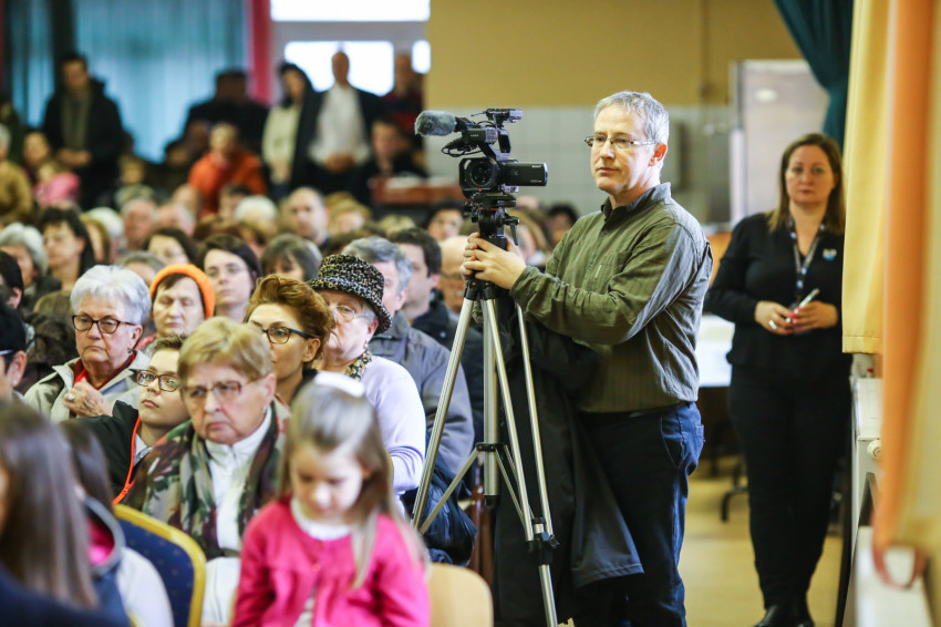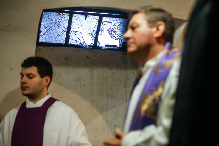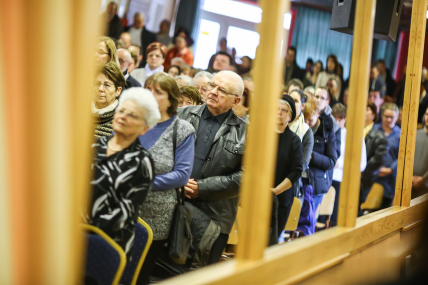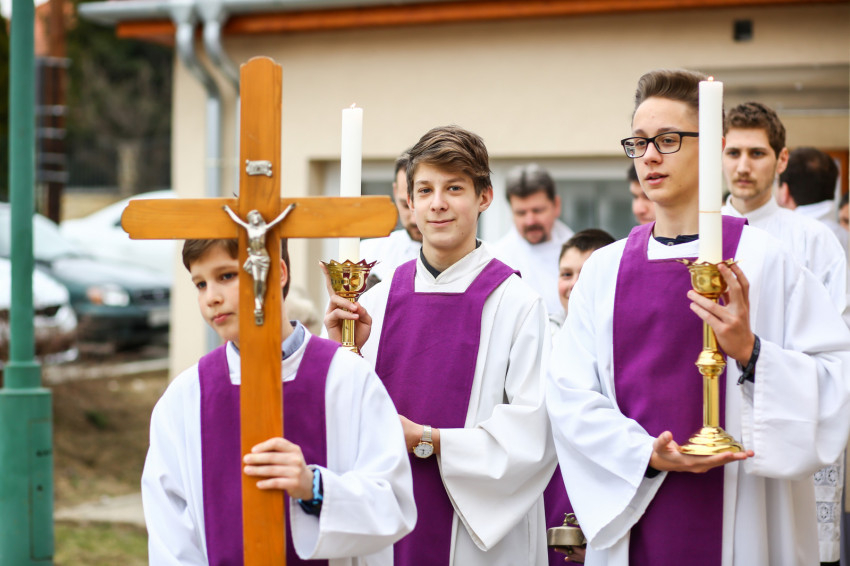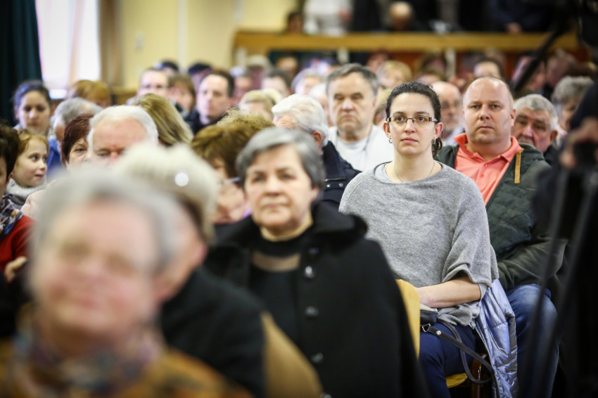 A mise után Görbe József plébános üdvözli az ökumenikus-vallásközi megemlékezés és engesztelő ima résztvevőit, köztük Radnóti Zoltán főrabbit, Riskó János református és Eszlényi Ákos evangélikus lelkészt.