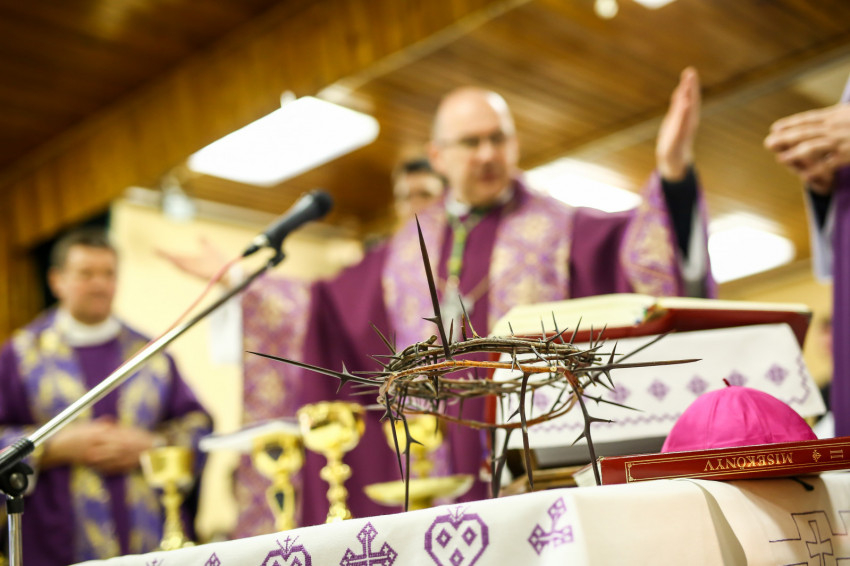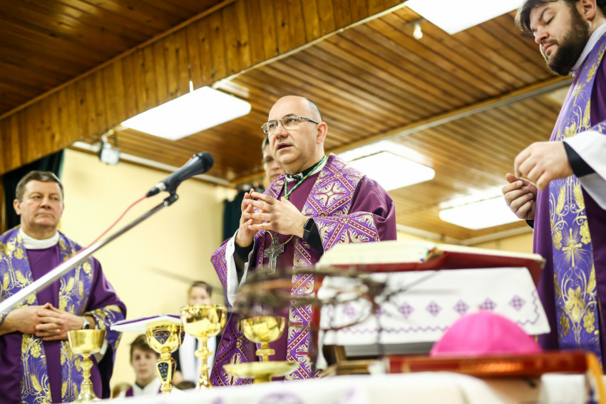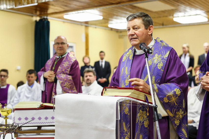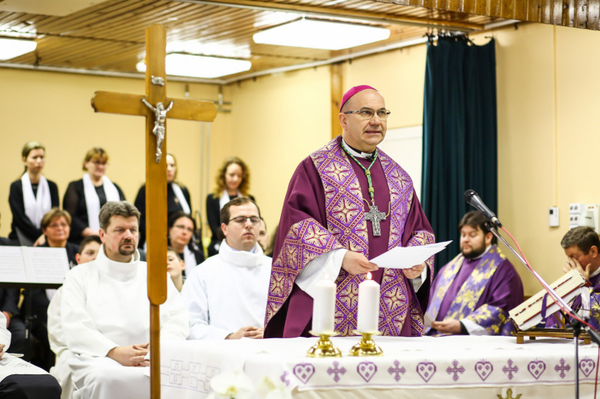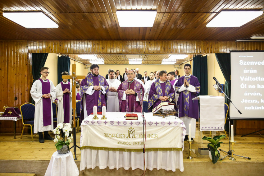 A mise kezdetén a püspök a „hívőket és talán nem hívőket, katolikusokat és más felekezeteket híveit” üdvözölve elmondja, hogy az egykori rabokért, a túlélőkért és a lelki sebek gyógyulásáért könyörgünk ma. Majd az olvasmány következik a bűnbeesésről, a kígyó és az asszony párbeszédével; a szentlecke, amely Ádámot és Jézust állítja párba, végül az evangélium Jézus pusztában való megkísértéséről.