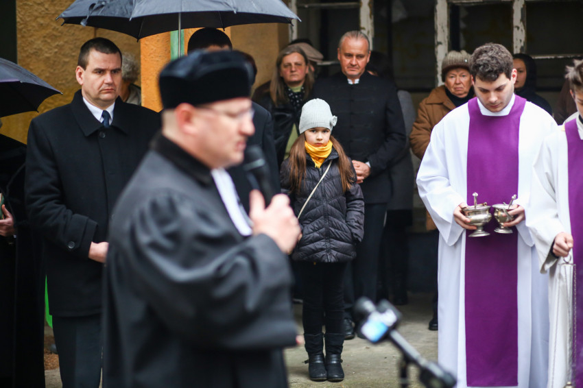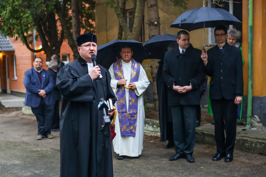 Eszlényi Ákos evangélikus lelkész a harmadik barakknál arra hívja fel a figyelmet, hogy a mai alkalom kiállás azért, hogy az ilyen szörnyűségek meg ne ismétlődjenek. Az emlékezésnek mindig megbocsátással és valami jobb felé való elindulással kell párosulnia, hogy a gyűlölet és mások elnémítása soha többé ne kapjon teret köztünk. Hiszen Isten egymásnak és egymásért teremtett bennünket.