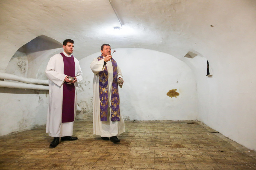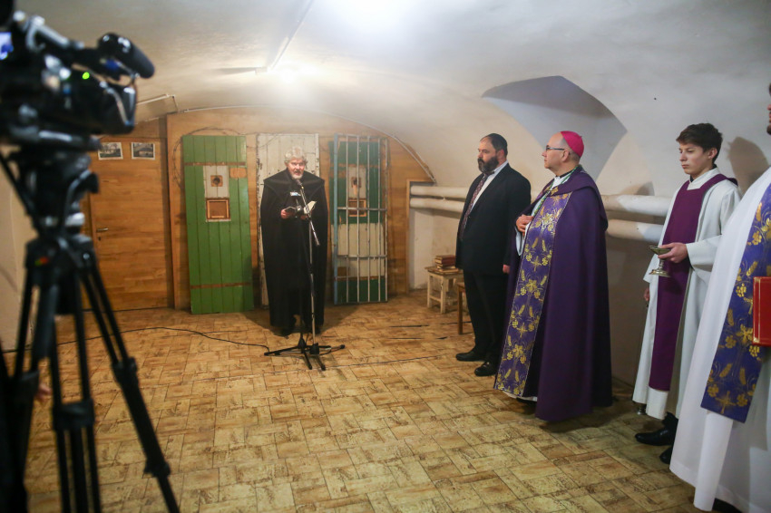 Utolsó állomásunk az egykori kínzások és vallatások helyszíne, egy pince. Radnóti Zoltán a reményről beszél, amely mindig erőt ad a szenvedőknek, majd a 130. zsoltárt (A mélységből kiáltok…) imádkozza, és a vallásgyakorlat mindenkori szabadságáért könyörög. Riskó János a szenvedőkkel sorsközösséget vállaló Jézusról beszél, Eszlényi Ákos pedig arról, hogy Isten életünk mélységeiben is mellettünk van, vigasztal, bátorít bennünket. Van erőnk, mert van Krisztusunk.