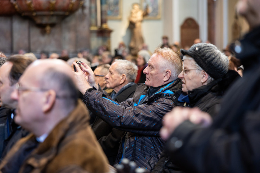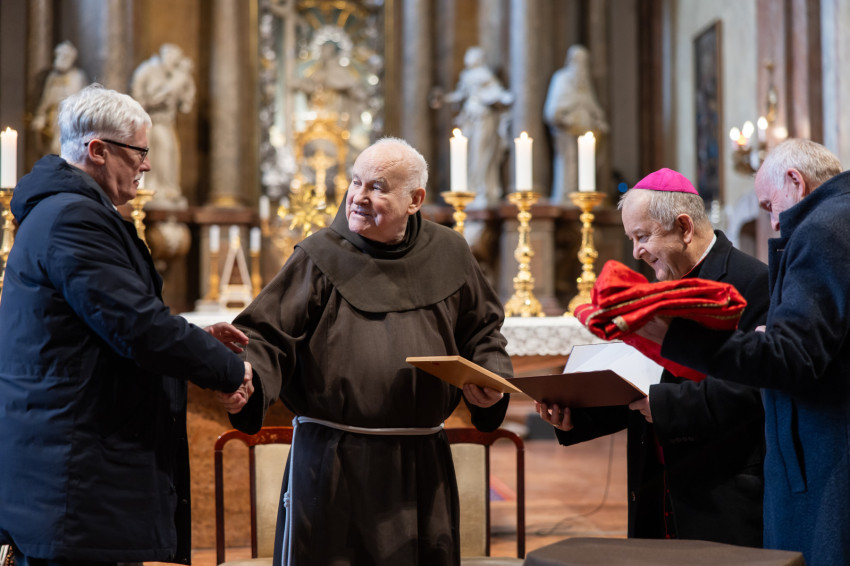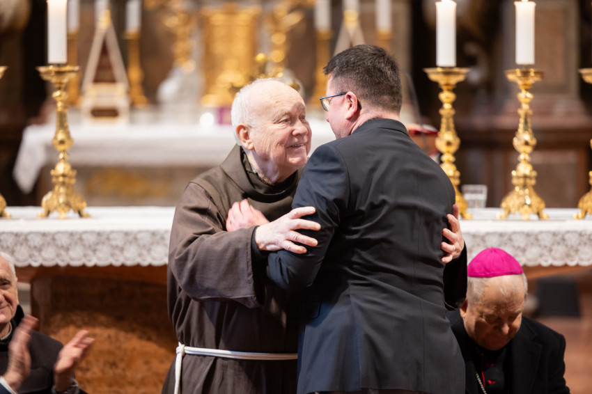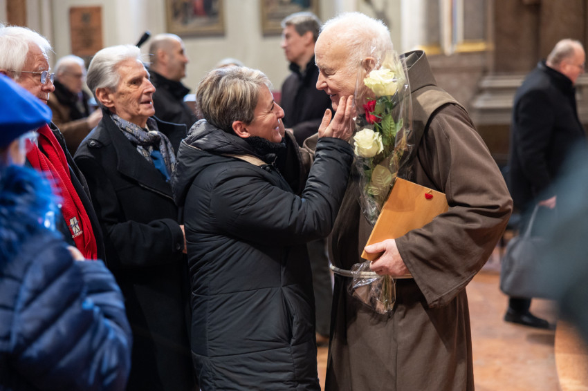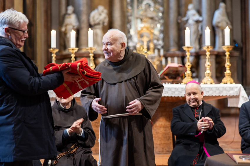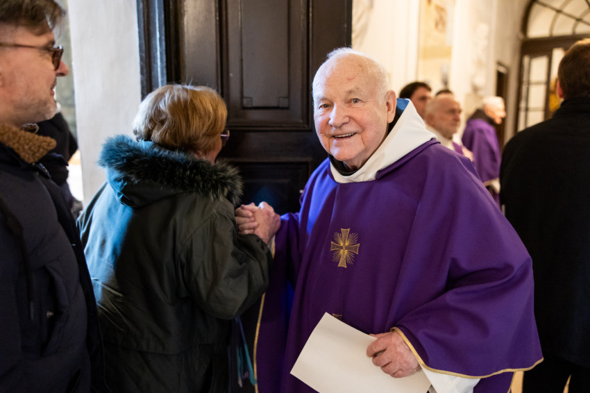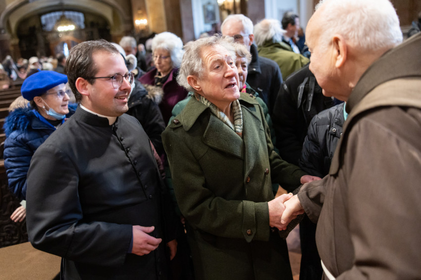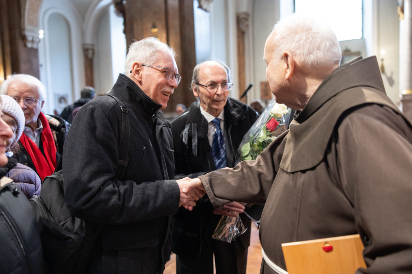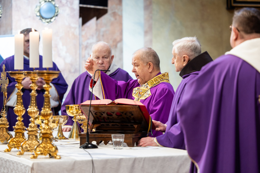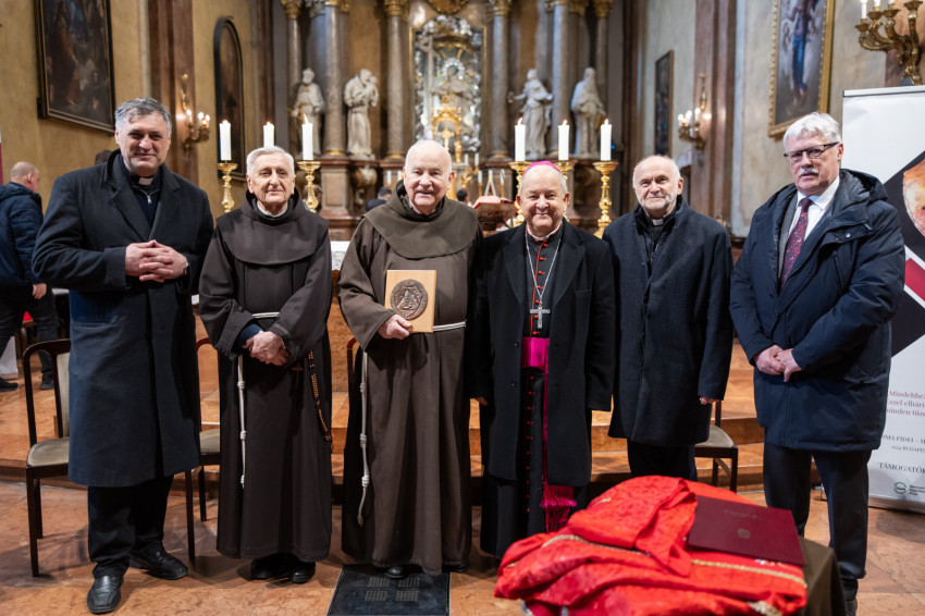 Az ünnepi szentmise főcelebránsa Bábel Balázs kalocsa-kecskeméti érsek, a tavalyi év Hit Pajzsa díjának kitüntetettje volt. Vele koncelebrált az ünnepelt mellett többek között Süllei László esztergom-budapesti általános érseki helynök, a Mátyás-templom plébánosa, Barsi Balázs ferences szerzetes, filozófus, teológus, Kálmán Peregrin OFM templomigazgató, ferences papok, szerzetesek.
