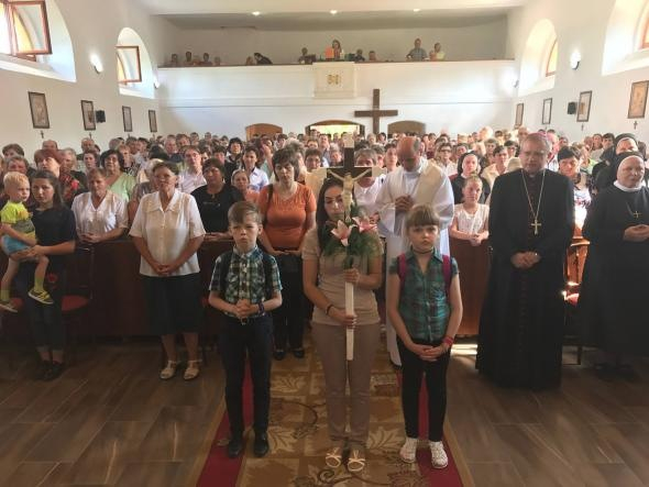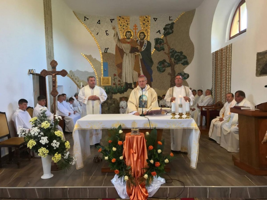 Az ezt követő szentmise főcelebránsa Böcskei László megyéspüspök volt, aki ragaszkodott hozzá, hogy szlovák nyelven misézzen. Bevezetőjében a főpásztor elmondta, hogy mit is jelent a jubileumi Szent László-év, a templom építésekor felhasznált kövek példájával: amint ezek a kövek – egyesek kisebbek, mások nagyobbak, egyesek kerekebbek, mások oválisabbak – egyben egy templomépületet alkotnak, úgy kell nekünk is egynek lennünk, Krisztus egyetemes Egyházának köveiként.