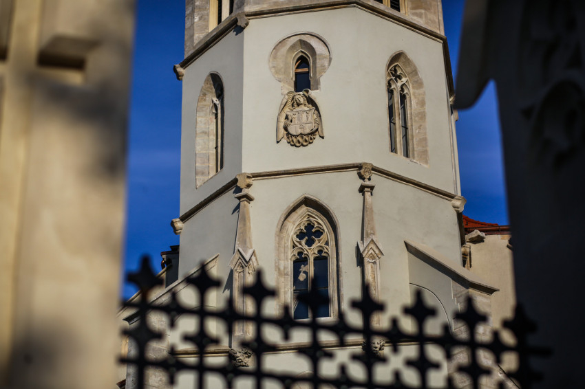 Első írásos említése 1278-ból való. Sokáig formálódott, a XV. században végül gótikus templomként készült el. A főhajót díszítő oszlopfők és konzolok, az égbe törő gótikus kőbordák lendülete a középkori mesterek tudását dicséri. Ahogy a város egyre nőtt, a templomot is bővítették; előbb két-, majd háromhajóssá építették át, 1484-re készült el teljesen. Felszentelésén a feltételezések szerint Mátyás király is részt vett. Ebben az időben húsz oltára lehetett (céholtárok), melyek felbecsülhetetlen értékű gótikus szobrait 1608 után a képrombolók kidobták a templomból és elégették. A Mátyás korabeli gótika művészi alkotásainak egyetlen megmaradt emléke egy fafaragású Szűz Mária-szobor az 1460-as, 1470-es évekből.