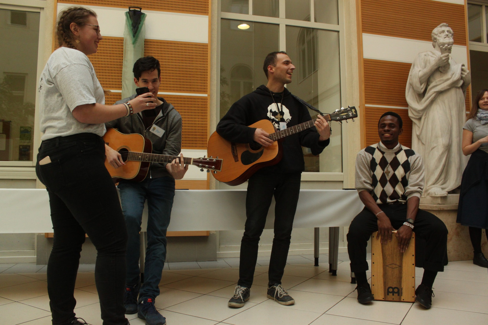 A lelki programok után a ragyogó tavaszi, kora délutáni napsütésben volt egy kis szabadidő a pesti belvárosban és a Duna-parton, majd a Városligetben megcsodálhatták a diákok a Magyar Zene Házát és az új Néprajzi Múzeumot.