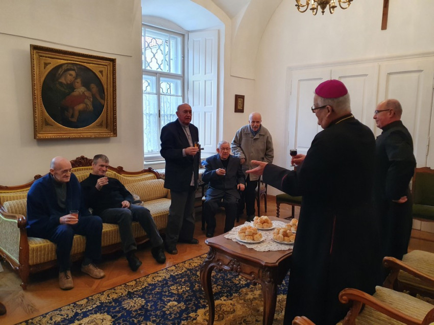 Spányi Antal székesfehérvári megyéspüspök a sokéves hagyományt követve szenteste napján meglátogatta a papi otthonban élő idős vagy beteg paptestvéreit.