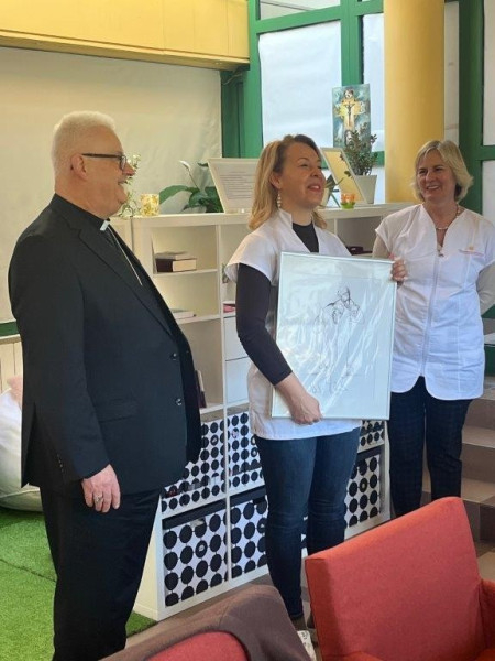 A főpásztor látogatást tett a lelkigondozók új irodájában és egy, a felebarátot felkaroló, hordozó művészi grafikával ajándékozta meg az ott dolgozókat. Megáldotta a helyiséget, és imádkozott, hogy akik ott segítséget kérnek, megtapasztalják a krisztusi szeretet erejét, amely nagyban elősegíti a betegek testi-lelki gyógyulását.