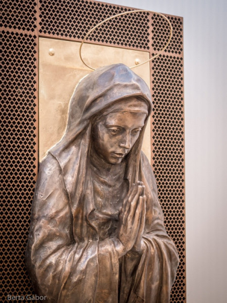 Böjte Horváth István elmondta, a Szűz Mária-szobor az Isten alkotásának tökéletes szépségét tükrözi, és megjeleníti az imádságos lelkület tisztaságát az arc és a kezek különleges ábrázolásával. Attribútumnak az Úrangyala-koszorút választotta, a tizenkét csillagot. Szent II. János Pál pápa szobra az Isten által elhívott embert szimbolizálja, aki az imádság erejével tölti be hivatását. A hangsúly itt is a kezeken és az arcon van. A drapériák és a fő síkok iránya teszi mozgalmassá és légiessé a kompozíciót. Attribútumként a ferulát, vagyis a pápai pásztorbotot választotta.