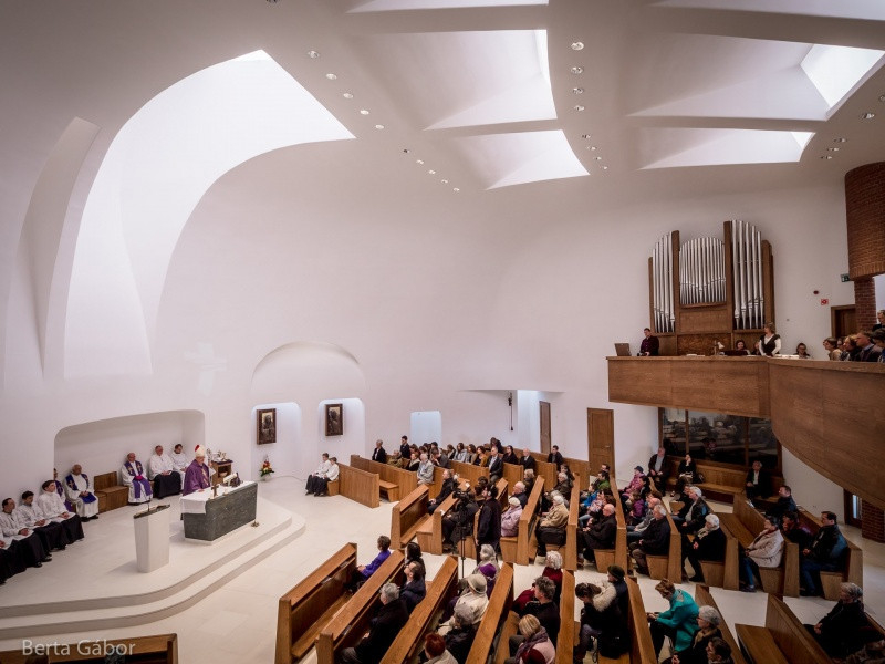 Spányi Antal megyéspüspök örömét fejezte ki, hogy az új templomban a Boldogságos Szűz Mária alakja tekint le a hívekre, aki életében mindig az Isten akaratát kereste.
