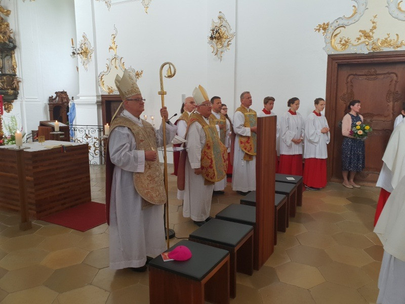 A püspök lelkipásztori útjának első állomása a bajorországi Neuburg an der Donau közelében fekvő Bergen auf Rügen Szent Kereszt kegytemploma 260. zarándokévadjának nyitó szentmiséje volt. Ez alkalommal köszöntötték a hely lelkiigazgatóját, Franz Kaspar prelátust, a Székesfehérvári Egyházmegye tiszteletbeli kanonokját 80. születésnapja alkalmából. A szentmise szónoka Gerhard Pieschl limburgi segédpüspök volt. A környékbeli papokon kívül jelen volt a helyi, eichstätti egyházmegye általános helynöke, Isidor Vollnhals is. A prelátust a szentmise végén mások mellett Bernhard Gmehling, a város főpolgármestere is köszöntötte. A kötetlen együttlét után lehetőség nyílt a kincstár értékeinek megtekintésére.