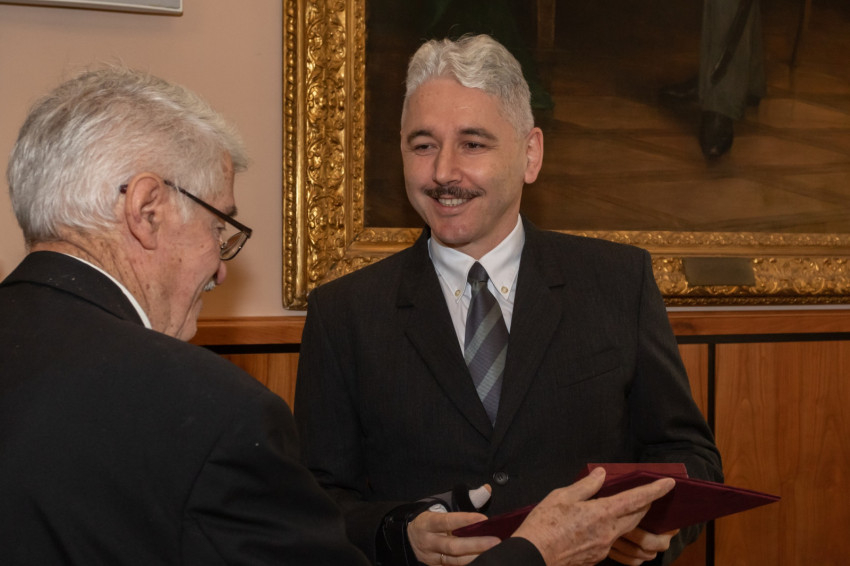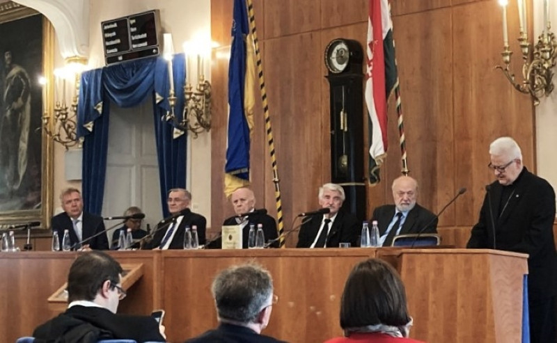 A másik Teleki Pál-érdemérmet Szécsi Árpád politológus kapta, akinek méltatása alkalmat adott Bakos Istvánművelődéskutató kurátornak, hogy felidézze a három kitüntetés születésének körülményeit, amelyben ő maga tevőlegesen, Szécsi Árpád pedig a jubileumi kiadvány szerzőjeként vett részt.