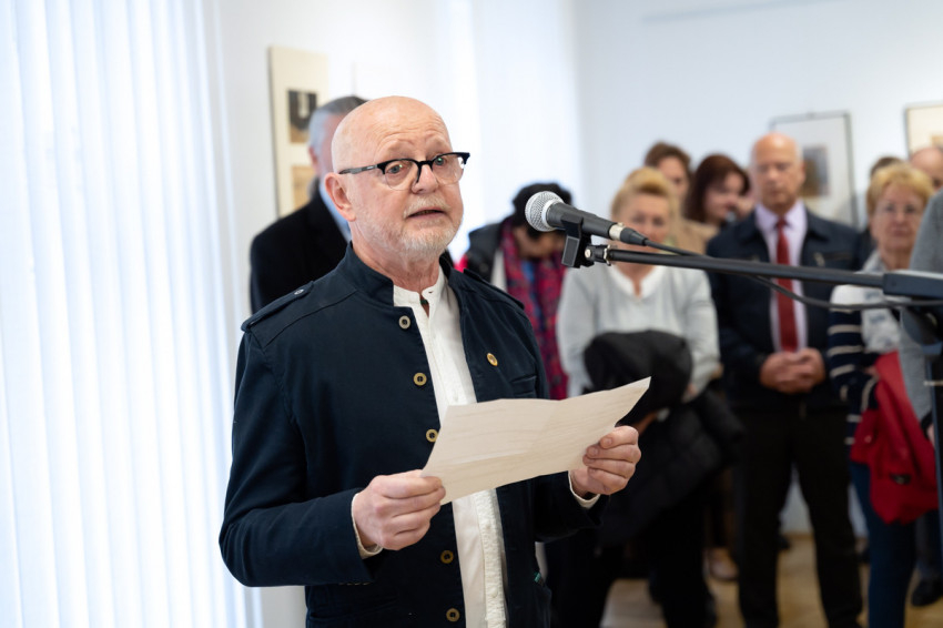 „Én ezekkel a fényből és sötétből születő alakokkal készülök az ünnepre, és egyben állítok emléket annak az embernek, aki negyed századon keresztül társként vigyázott rám, állt mellettem, és lett az én védőangyalom. Árnics Katinak hívták. Ezért mutat ez a kiállítás túl önmagán, így válnak a képek és ez a tárlat mementóvá és üzenetté is egyszerre.”