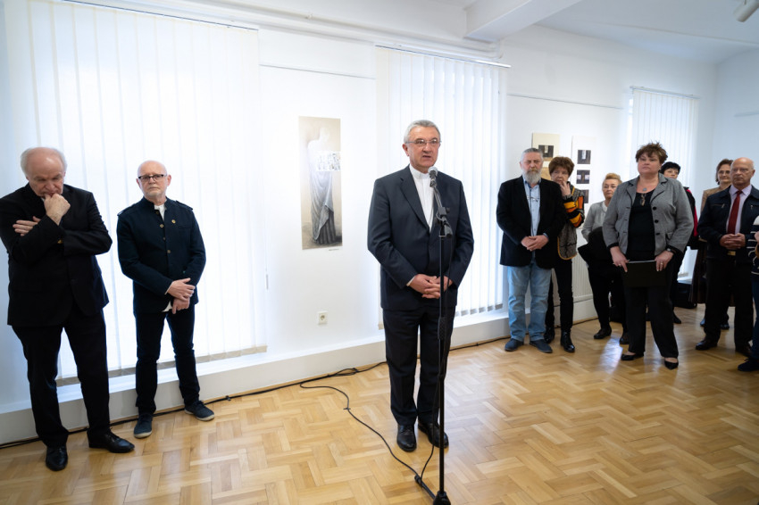 A kiállítás címére – Üzenet – utalva a főpásztor elmondta: a stációk a hívő ember számára leginkább Jézus szenvedésének állomásait jelentik, de ezek valamiképp az emberi élet stációi is.