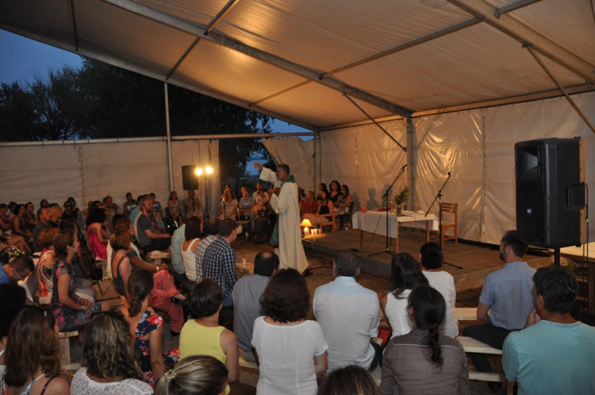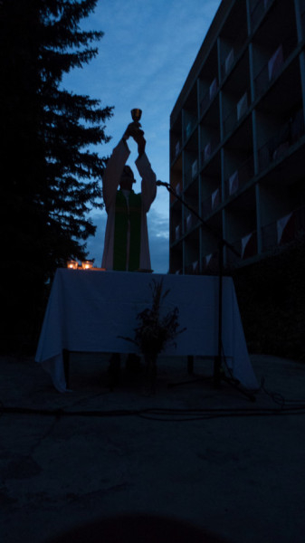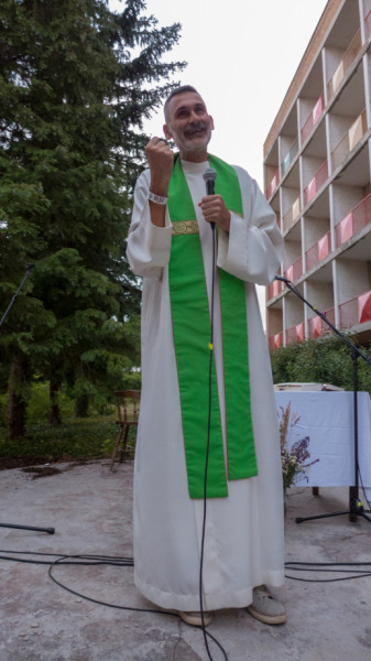 Az öt nap egyik kiemelkedő eseménye a szombat esti szabadtéri szentmise volt, amelynek elején Pál Feri arra hívta fel a jelenlevők figyelmét, hogy ha meg vagyunk keresztelve, ha nem, Isten nagyra tart minket. Szabad elengednünk az elvárásainkat, hiszen Isten sem az, aki köszönés helyett is elvárásokat fogalmazna meg.