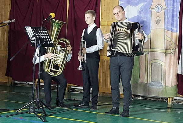 A műsor jó hangulatához a Sax Buam Trio járult hozzá: Sax Bernard és Sax Noel, az iskola tanulói édesapjuk, Sax Norbert harmonikakíséretével nyergesújfalui sváb dalokat énekeltek, a nap végén pedig zenével szórakoztatták a nagyérdeműt.